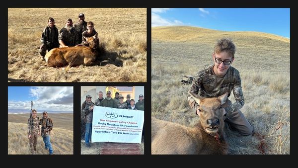 The Apprentice Tule Elk Hunt was a huge success! Apprentice hunter Wyatt got a nice cow elk after an early stalk on Saturday and followed up with a bonus monster hog on Sunday! The Chimineas Ranch Foundation and the San Fernando Valley Chapter of the Rocky Mountain Elk Foundation sponsored this hunt. Wyatt is shown with his proud father and grandfather.