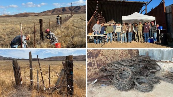 The 2023 record storms downed trees, washed out roads, and caused landslides, blocking access to much of the Chimineas Ranch. Work shifted to the American Ranch Unit for the first habitat improvement project of the year. Members of CDFW's Natural Resource Volunteer Program, led by CRF Director Terry started removing barbed wire from a newly acquired 640-acre property. The removal of wire from the one mile east boundary gives wildlife and public land hunters free access across the new property.